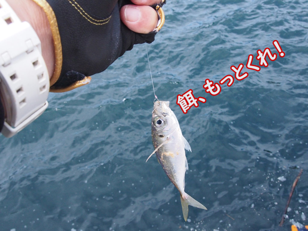 ワシの撒いた餌に、我先にとちびっこいアジコがわさわさと群れてくる。