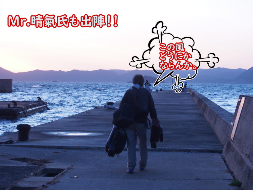 釣り場もあまり空いていないし、風が正面からの爆風だし、我々は舘浦エリアチームと壱部エリアチームに分かれることにした。
