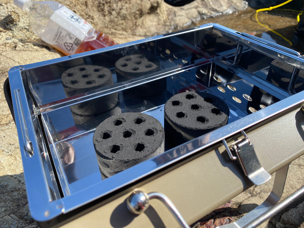 グリルに炭を置いて