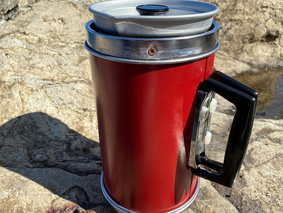 アルコールランプみたいなやつでお湯をわかすことができる、風に強いアウトドアの味方。
