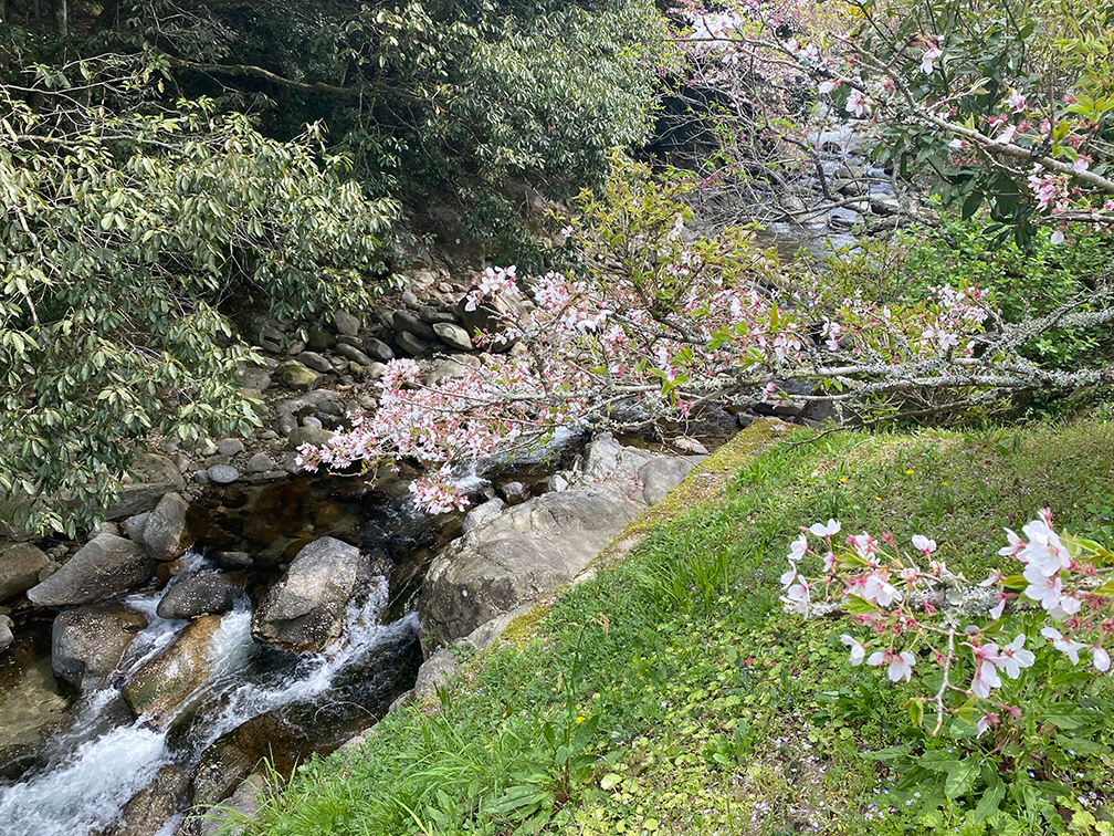隣りにながれる川には桜の木が土手に植えられており、既に葉桜に近い様相。