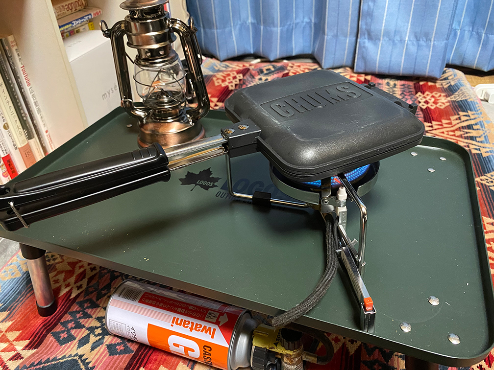 ホットサンドメーカーから、香ばしい良い香りが立ち昇ってくる。