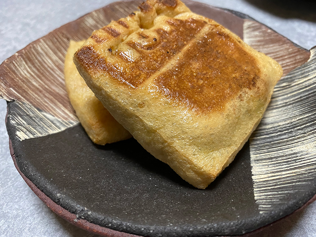 弱火でじっくりと火を通し、油揚げの表面に焦げ目がつくまで、焼き上げる。