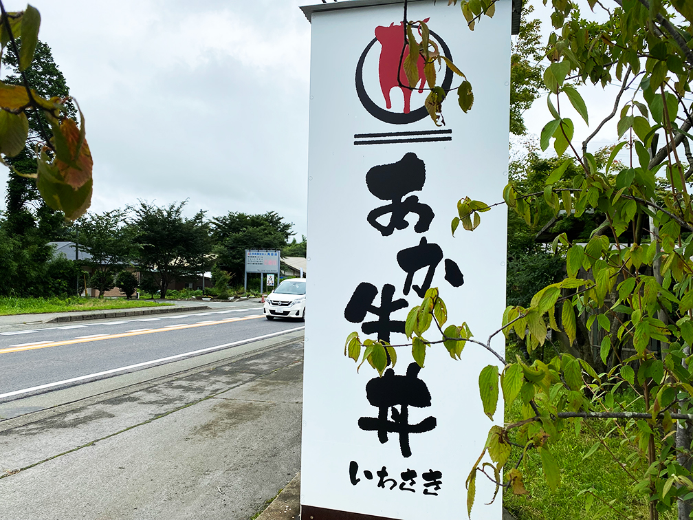 なんと堂々たる看板。『あか牛丼』の文字に後光が!!