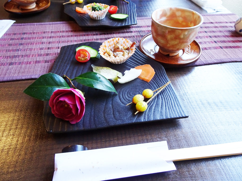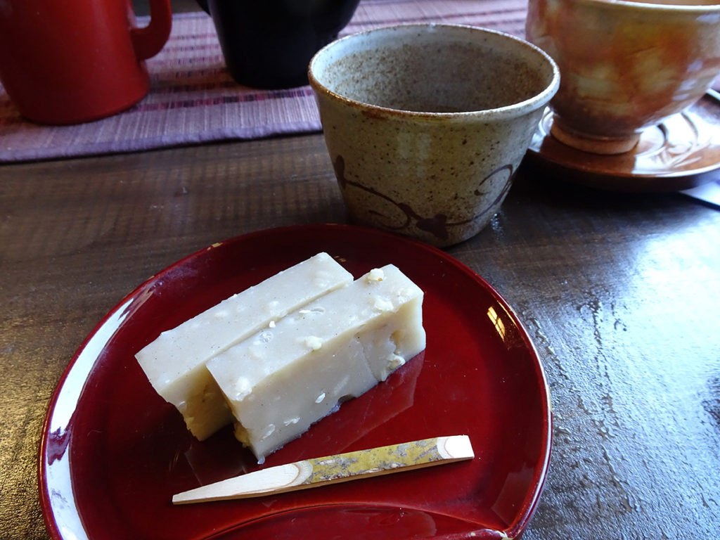 このあと、サービスでデザートまで。蕎麦の実の羊羹だとか。