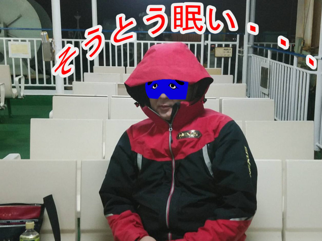 しかもこれから釣りをしてまたフェリーで帰ってくるということは、出発日の徹夜をいれて、プラス24時間くらいは寝ないと言うことなので・・・2日くらい徹夜することになる。