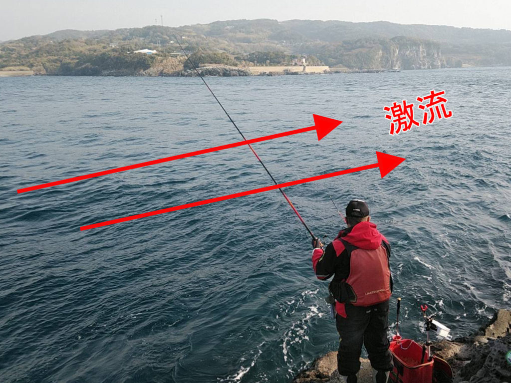 海の状況はというと、潮は左から右へ川のように流れる激流!