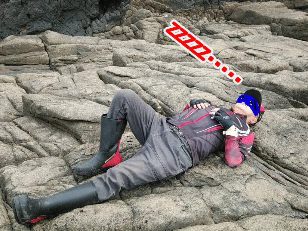 ところが釣り始めてみると、35センチどころか、手のひらから足裏サイズのクロばかり。最大でも32センチであった。なので、釣り始める前に決めたルールにしたがって、お持ち帰りの魚はゼロ!!だったのである。