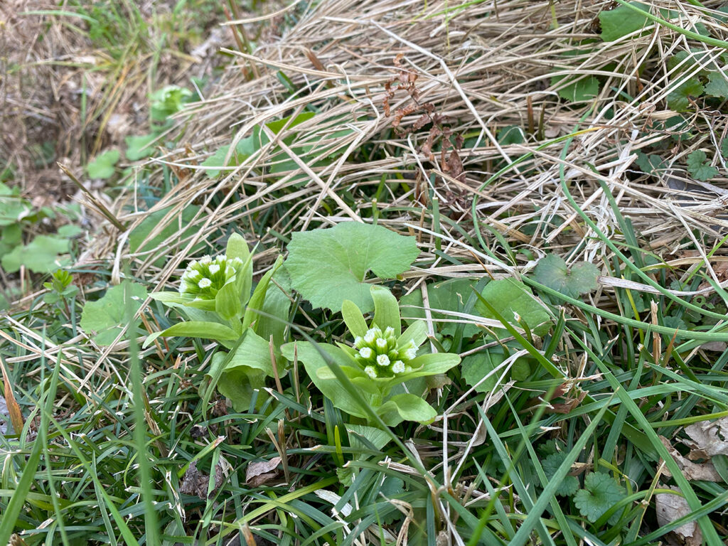 これは少し花が開いてしまっているが、あたりを見渡せば、食べごろのふきのとうがある。