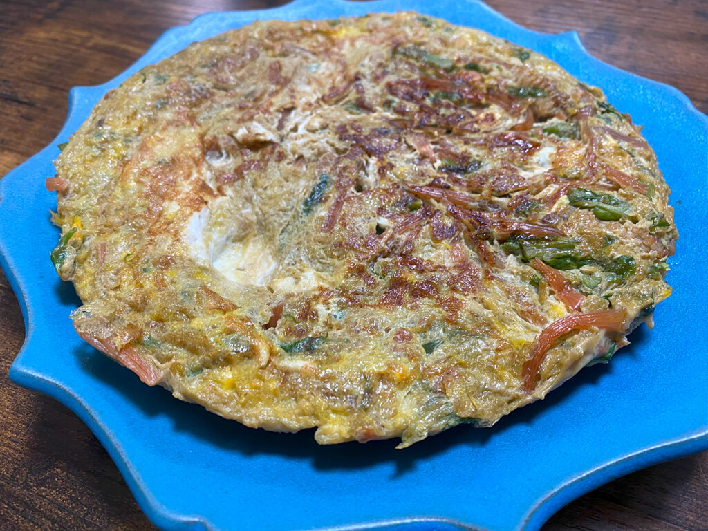 つくしとふきのとうのほんのりした苦みが、卵とよく合う。